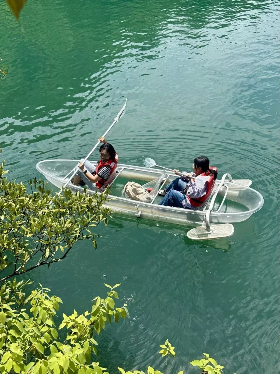 二战上岸之后,和我的天才女友一起在小七孔划玻璃船。依然可以回忆起那天风的味道,阳光慢慢,山有鸟鸣,持续两年的压力骤然消减,往前看总抱有一些期待,最好的朋友就在身边,那一刻想时间留在这个瞬间就好了。