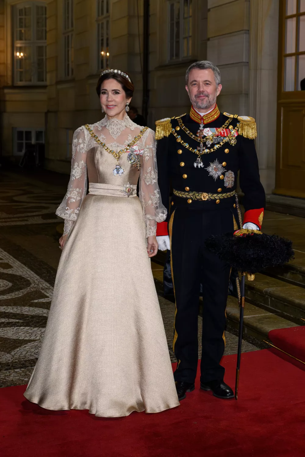 2026年的第一天晚间,丹麦王室在首都哥本哈根的阿美琳堡宫(Amalienborg Palace)举办了传统的新年招待会与国宴,国王弗雷德里克十世(King Frederik X) 和王后玛丽(Queen Mary),联袂接待政府官员、官方代表、王室成员以及重要来宾,共同庆祝新一年的开启。