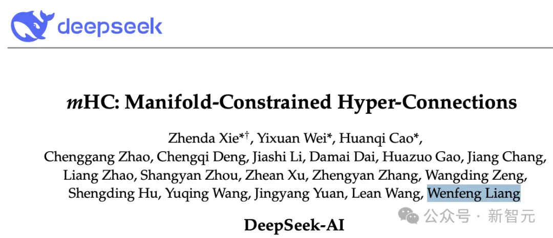 2026新年第一天,DeepSeek发表了梁文锋署名的重磅新论文,提出了一种名为「mHC(流形约束超连接)」的新架构,在27B参数模型上,仅增加约6.7%的训练时间开销,即可实现显著性能提升。