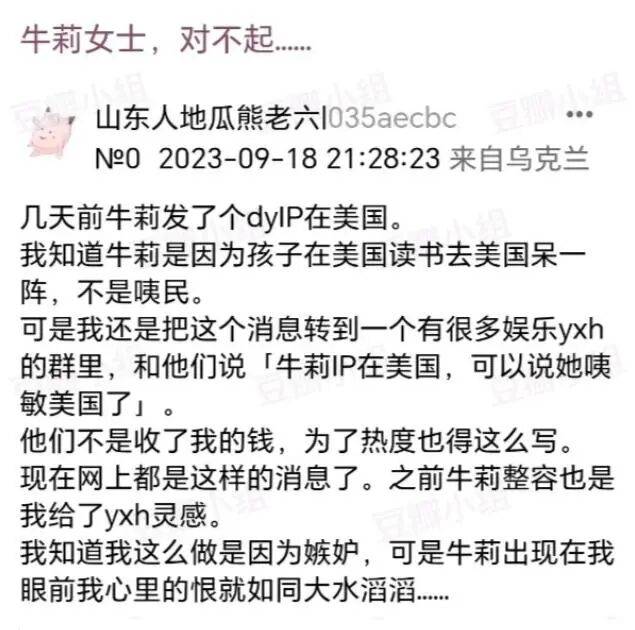 她还被曝曾使用小号攻击同行,针对牛莉发表嫉妒性言论并道歉。
