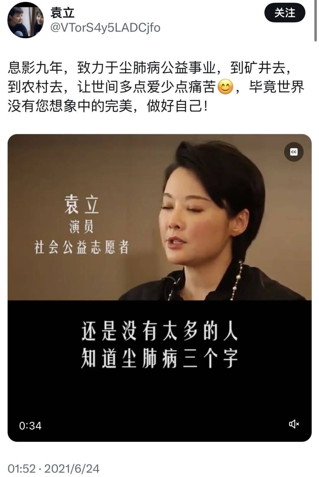 袁立在外网一直发布的消息也多是公益活动,比如尘肺病等。