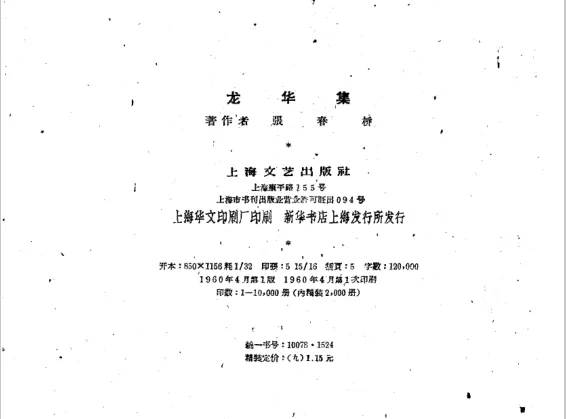 偶然间,我得到一本“文革”时期“四人帮”成员之一张春桥的杂文集——《龙华集》。这本初版于1960年4月的小书较薄,全书约十二万字,收录杂文、评论四十篇左右,大抵是作者此前发表于报刊的文字,后结集出版。内容多写于1958至1959年前后,时间跨度三年。此时的历史背景,是大跃进之后,又逢三年自然灾害。时代洪流中的种种故事与事件,自然也会投射于他的笔端。