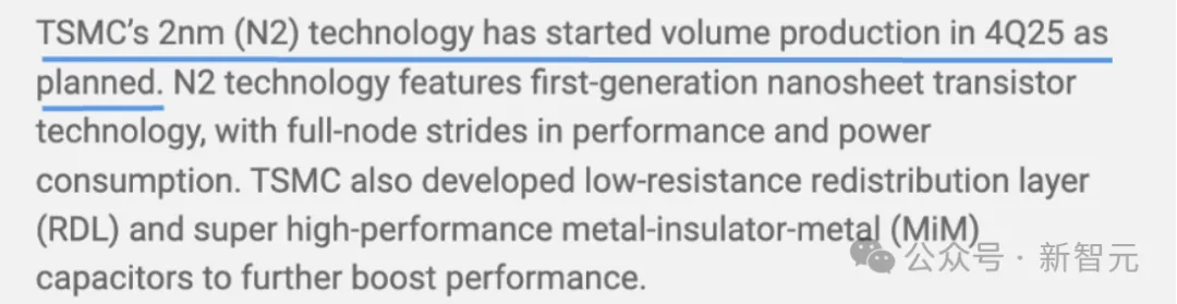 台积电2nm(N2)技术已按计划于2025年第四季度投入量产。