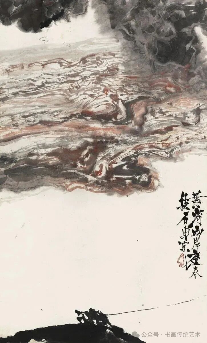 石鲁的山水画确实独树一帜,他不仅革新了传统技法,更将革命情怀和西北风骨融入了笔墨之间。他的作品既有《转战陕北》的磅礴气势,也有《华岳雪霁图》的苍劲雄浑,每一幅都充满力量感和时代精神。