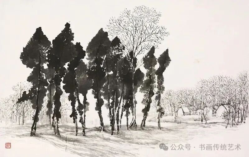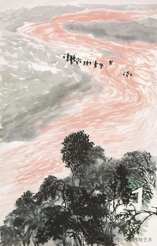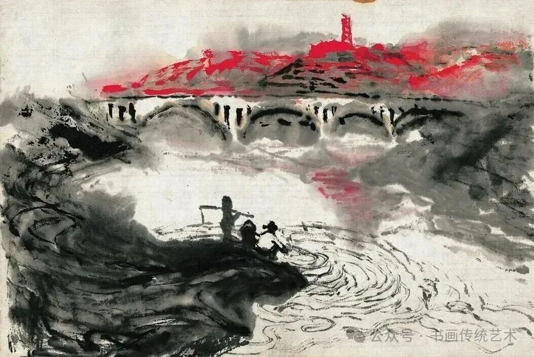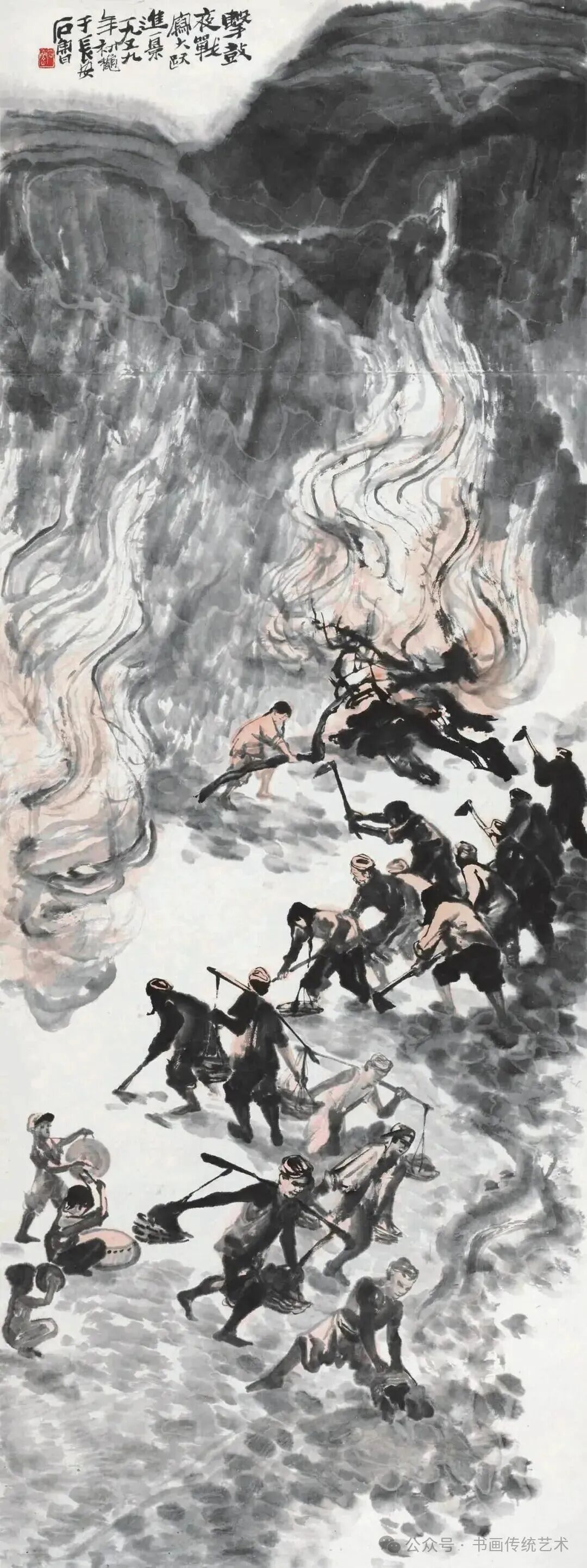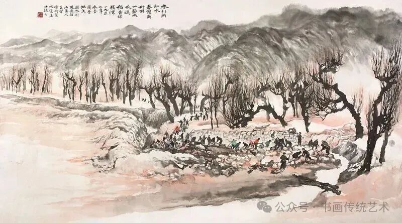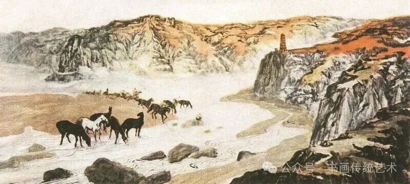 《转战陕北》:以传统山水画形式表现重大历史题材,构图宏大,笔墨雄浑,是长安画派的代表作。