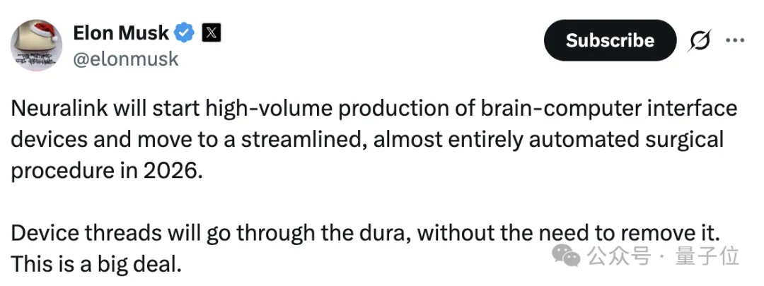 马斯克宣布:量产脑机接口,手术全自动化量子位
