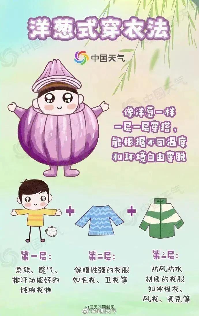 遵循“洋葱式穿搭”,即像洋葱一样层层叠加式穿搭。