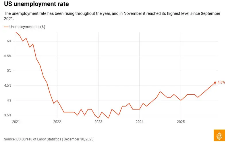 尽管特朗普承诺要重振美国制造业,但自他1月份上台以来美国失业率一直在稳步上升。11月份,美国官方失业率攀升至4.6%,创四年新高,高于1月份的4%。