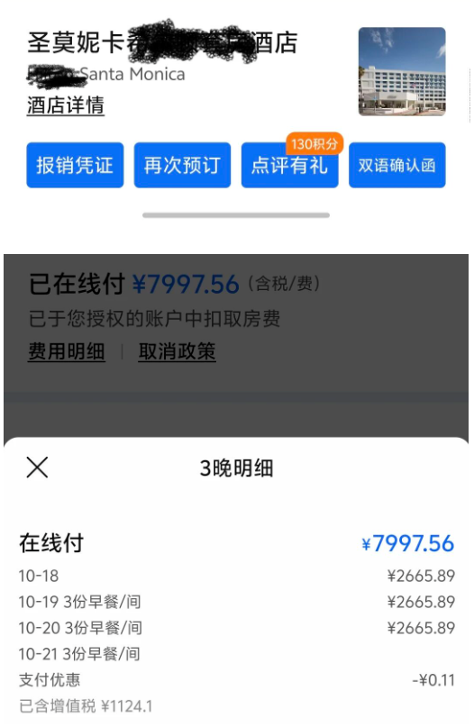 去年10月中旬,抵达洛杉矶前几天,我们住在圣莫尼卡海滩附近的一家连锁五星酒店,价格大概是含税400美元左右。