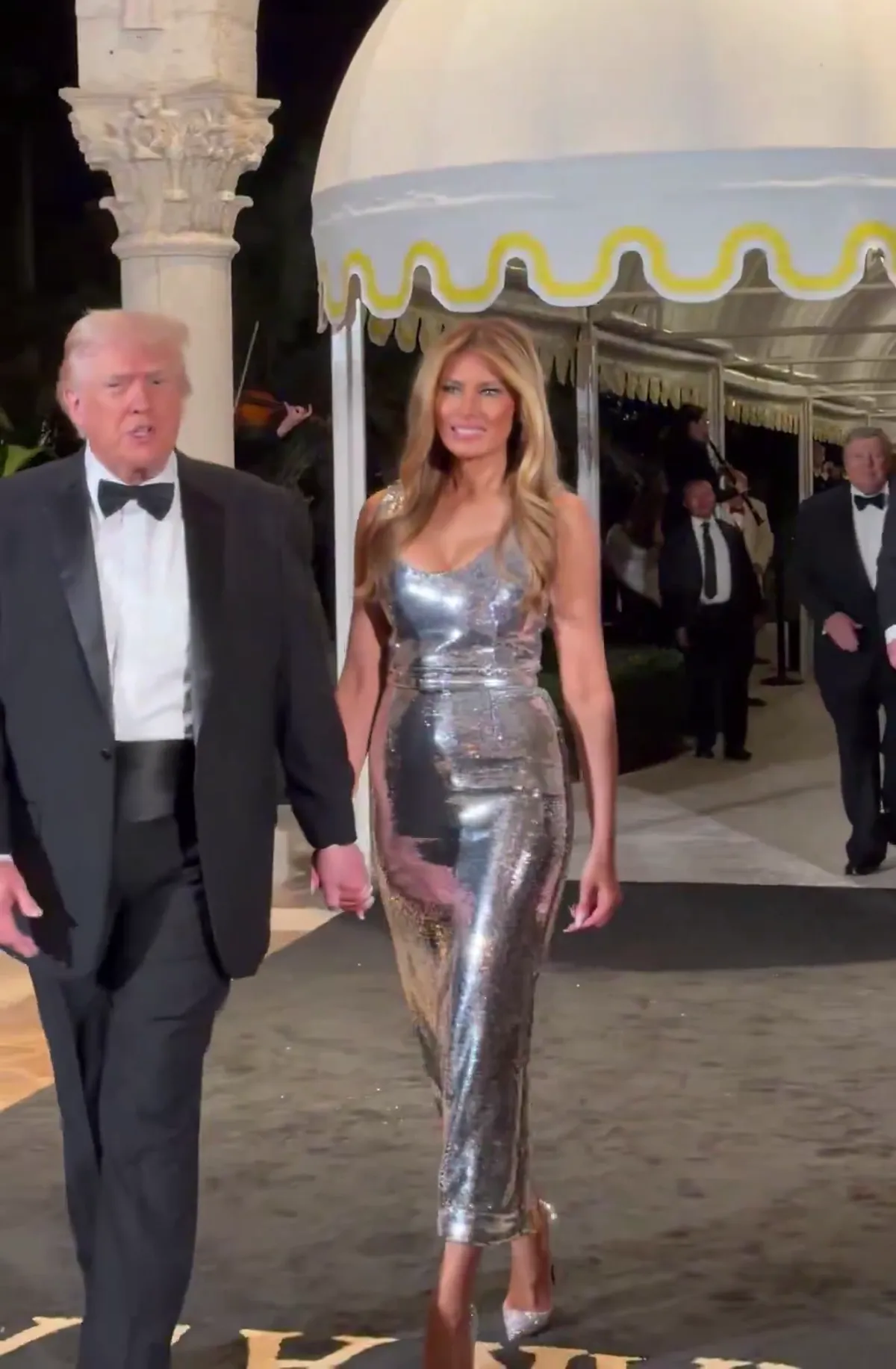梅兰妮亚的亮片礼服来自The New Arrivals,闪耀迷人。(翻摄X@MELANIAJTRUMP)
