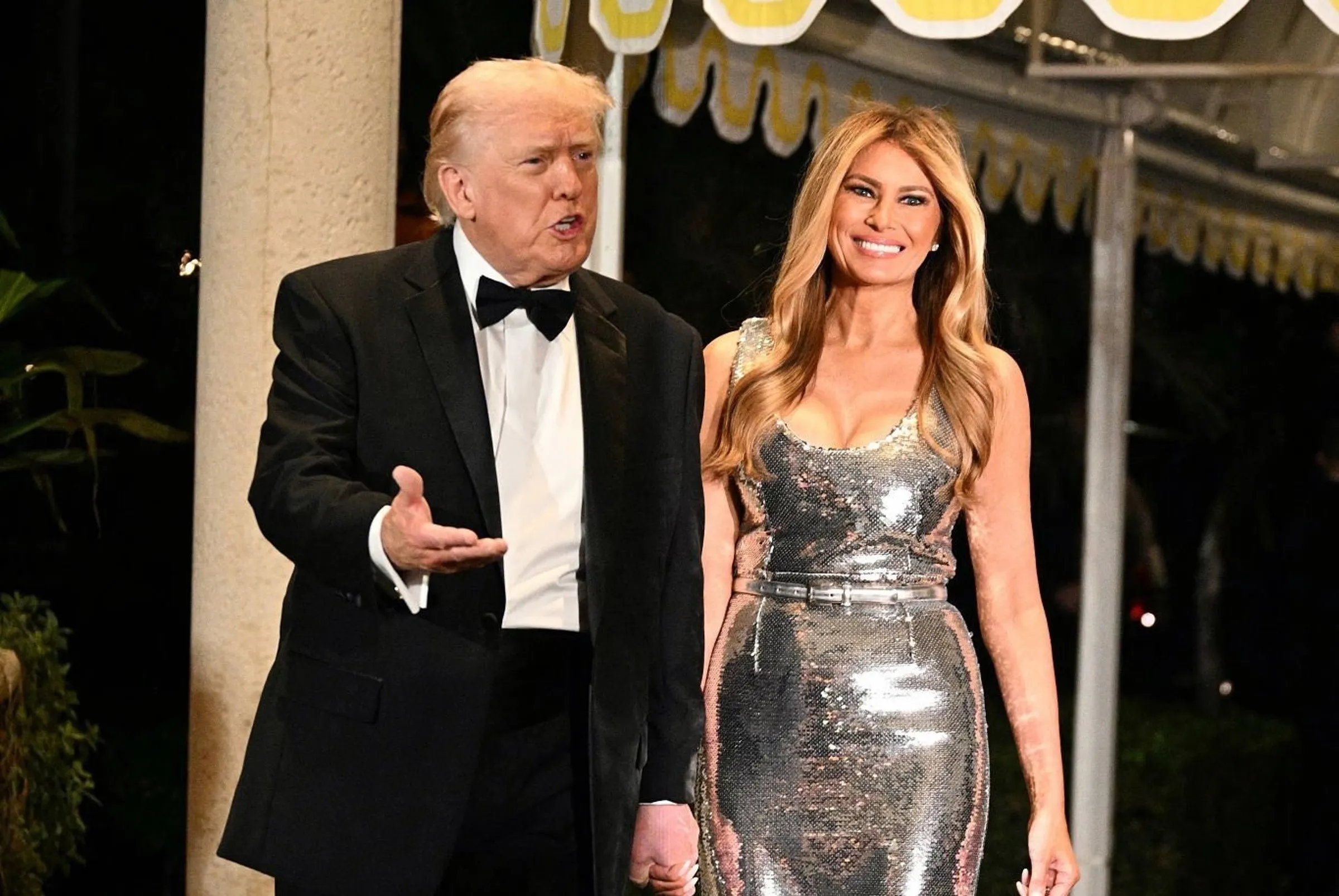 美国总统川普(Donald Trump)在2025年12月31日依照家族传统,到佛州海湖庄园跨年。第一夫人梅兰妮亚(Melania Trump)以一袭银色亮片礼服亮相,尽显好身材,吸足所有目光。