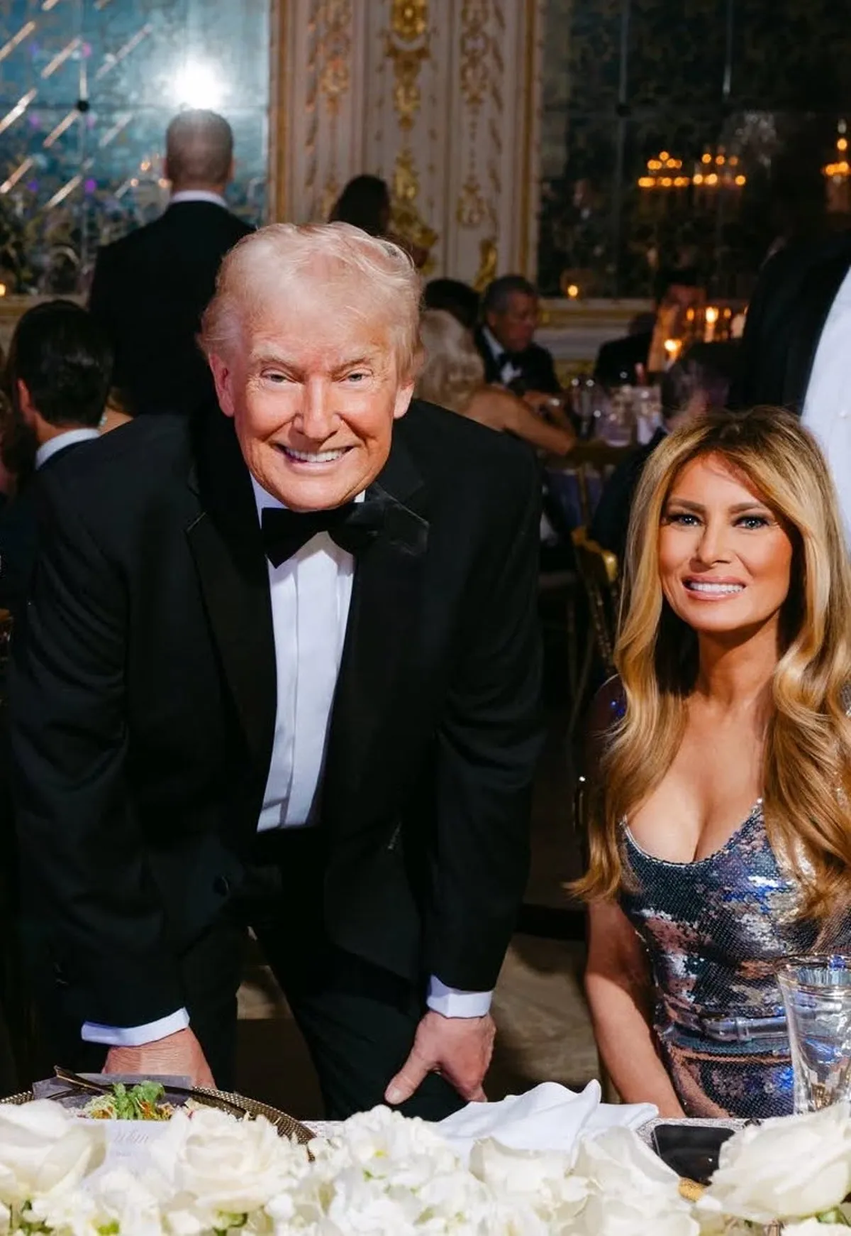 川普在海湖庄园跨年,梅兰妮亚一身爆乳装相当吸睛。(翻摄marcelitopomoy8 IG)
