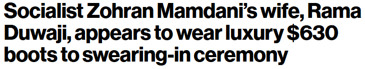 纽约市第一夫人拉玛·杜瓦吉(Rama Duwaji)在其丈夫、纽约市市长佐赫兰·马姆达尼的就职宣誓仪式上,被指穿着一双售价630美元的高端设计师“手工”皮靴。眼尖的批评者周四指出,这一奢华造型与这位政客塑造的“平民”形象背道而驰。