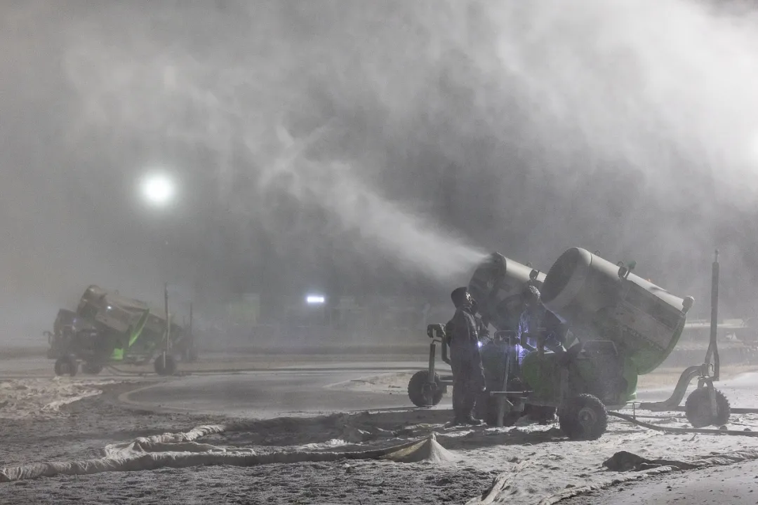 户外雪场全靠造雪机。(图/视觉中国)