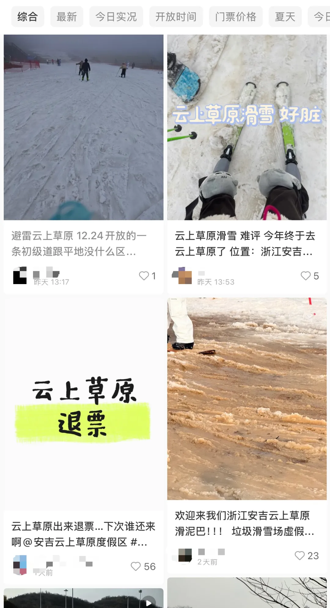 比如这次游客们的糟糕体验,就主要集中在雪的质感上。因为近期气温不够低,造雪机的努力远远无法支撑滑雪道的需要。薄雪很快就和土融合成了泥,或是融化后再次结成冰,对于需要松软雪道的滑雪运动来说,属于实打实的“翻车”。