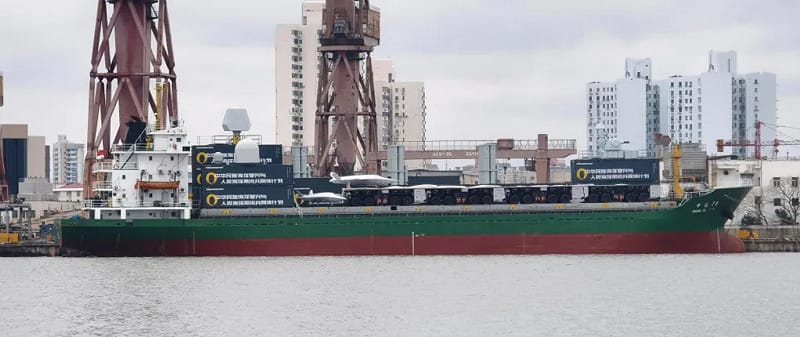 12月底被报导以民用货船改装成模组化导弹发射平台的“中达79”被发现又变装卡车连接的模组化电磁弹射轨道系统,变身攻击无人机发射母舰。