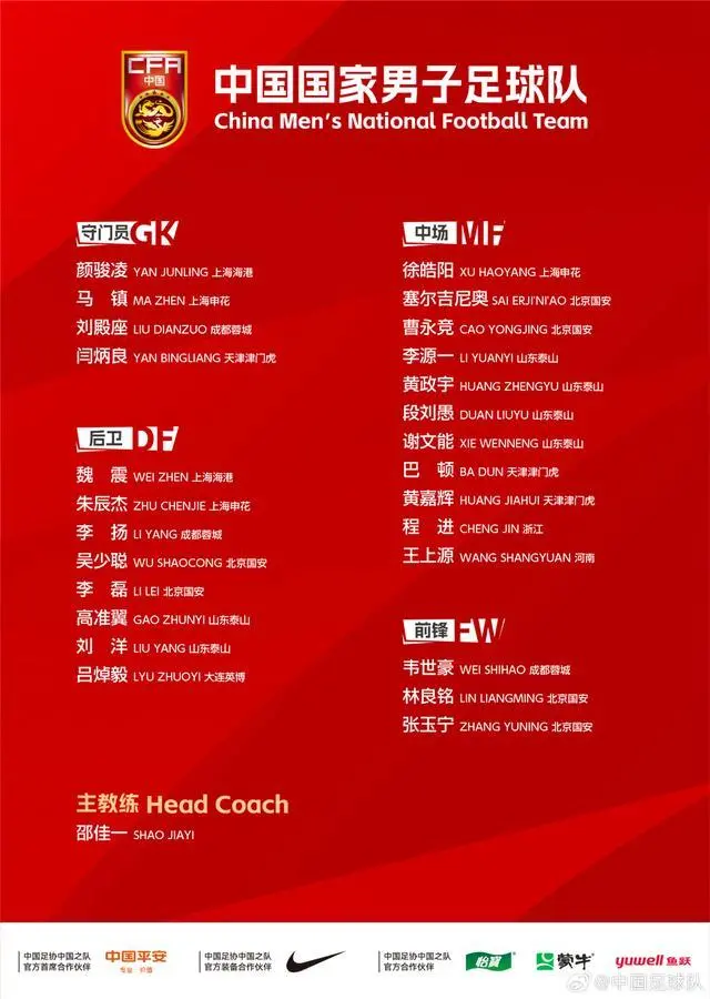 在邵佳一公布的26人名单中,老队长王大雷、中卫蒋光太、蒋圣龙落选,山东泰山后卫刘洋回归,正在备战U23亚洲杯的王钰栋、蒯纪闻等人无缘本次集训。天津津门虎门将闫炳良,成都蓉城后卫李扬、大连英博后卫吕焯毅3人首次入选国家队,北京国安中场塞尔吉尼奥是唯一入籍球员。山东泰山和北京国安是国脚输出大户,各有6名球员入选。