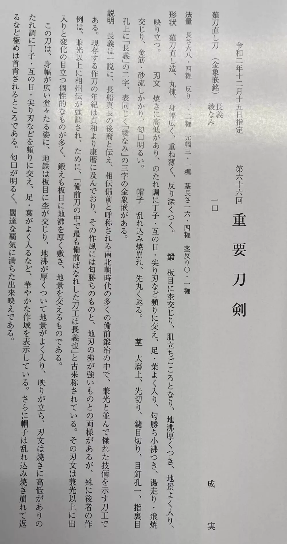 被评上重要刀剑的作品,会被收入重要刀剑图谱,图为成实的藏品书载图
