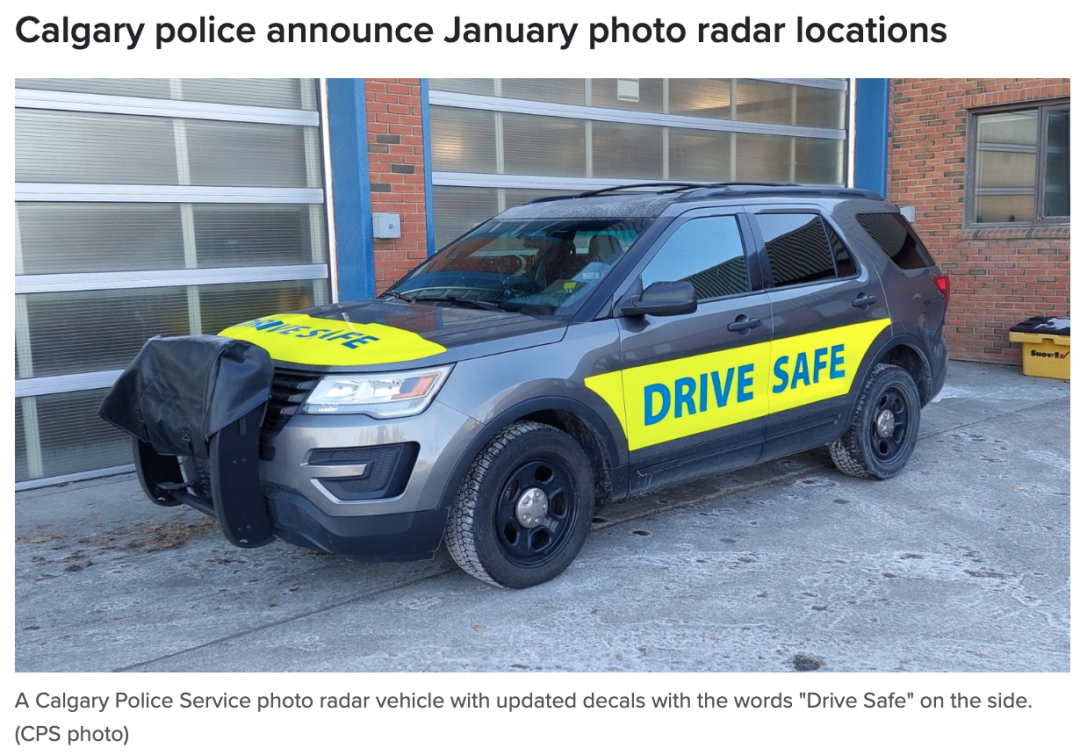 据卡尔加里警方(Calgary Police Service, CPS)1月1日发布的新闻稿,本月移动照相雷达将重点关注以下社区: