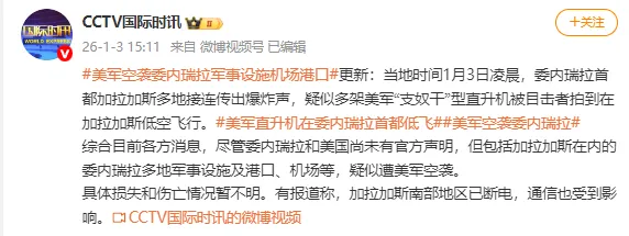 综合目前各方消息,尽管委内瑞拉和美国尚未有官方声明,但包括加拉加斯在内的委内瑞拉多地军事设施及港口、机场等,疑似遭美军空袭。