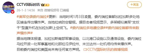 当地时间1月3日,总台记者获悉,委内瑞拉首都加拉加斯传出数声爆炸声。
