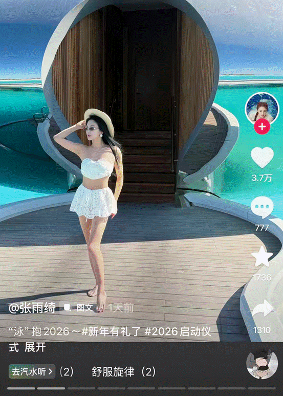 2025年最后一天的社交平台,被张雨绮的一组沙特海边泳装照彻底点燃。