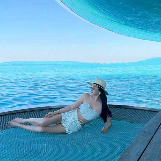 碧海蓝天之间,她把微胖身材的风情与韵味,演绎得淋漓尽致。