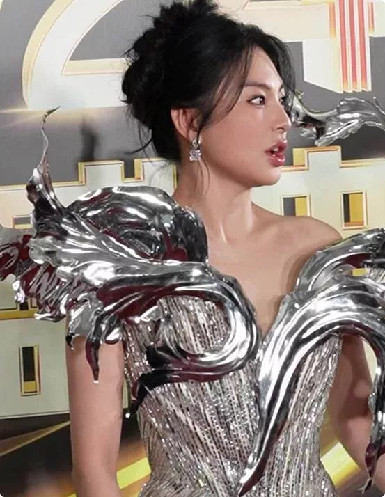 她从不刻意遮掩自己的身材,反而昂首挺胸,自信从容地面对镜头,那份由内而外的气场,比任何华服都更吸睛。
