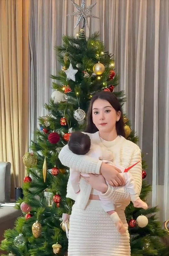 元旦视频中,方媛扎着简约马尾,化着淡妆,白色针织套裙勾勒出平坦腹部。 她一边轻晃怀中的小女儿,一边对镜头露出骄傲的微笑。三胎女儿穿着浅粉色连体衣和同色袜子,头发乌黑浓密,窝在妈妈臂弯里安静入睡。方媛时不时低头查看女儿状况,手势轻柔专业,网友感慨“这抱姿一看就是亲自带娃的妈妈”。