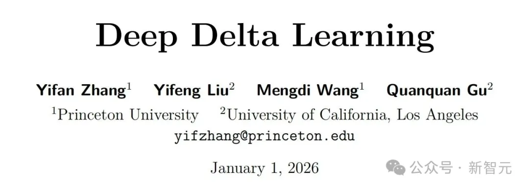 这篇来自普林斯顿和UCLA新研究,提出了一个全新架构:Deep Delta Learning(DDL)。