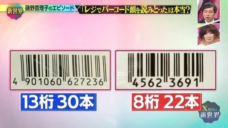 节目组选择以10日元的小零食作为范本。因为商品较小,使用的条码与标准版不同,是缩小版的8位数和约22条黑色条纹,提高了实验成功的可能性。