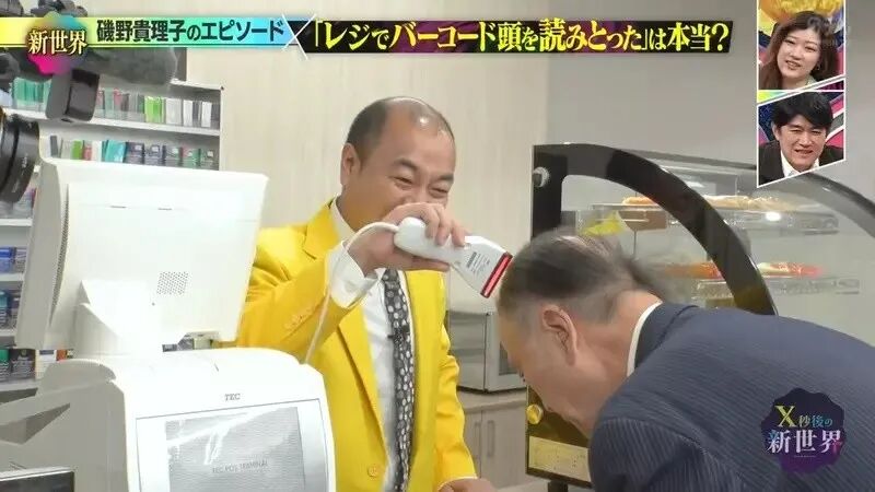 她以前在便利店打工的时候,碰上一位秃头的顾客在柜台前弯腰,结果扫码枪不偏不倚扫到客人的秃头,结果竟然“嘀”的一声,扫出了“10日元”的价格。