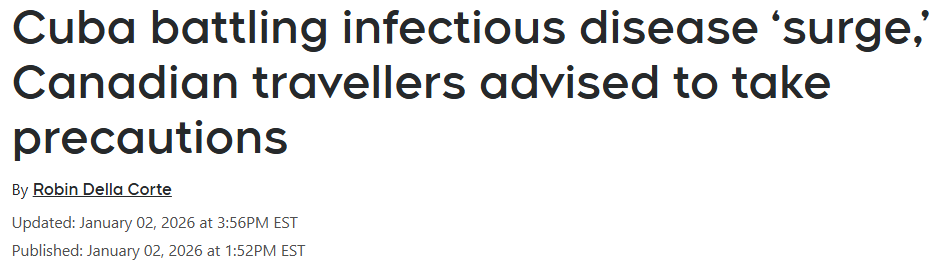 加拿大政府已于2025年11月和12月更新旅行健康提示,明确提醒前往古巴的旅客需高度重视防蚊虫措施。
