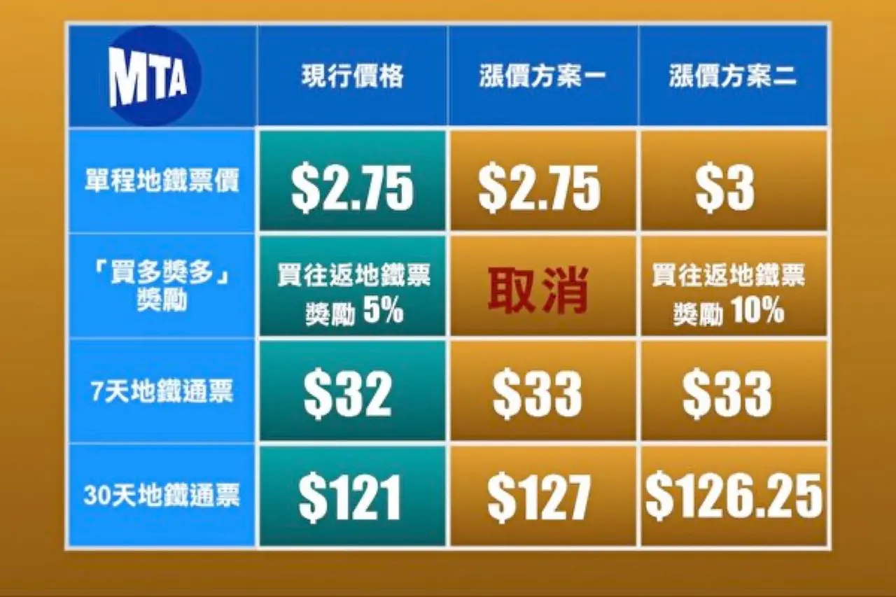 MTA表示,票价收入对于提供安全、可靠的交通服务至关重要,此次上调有助于应对通胀压力。