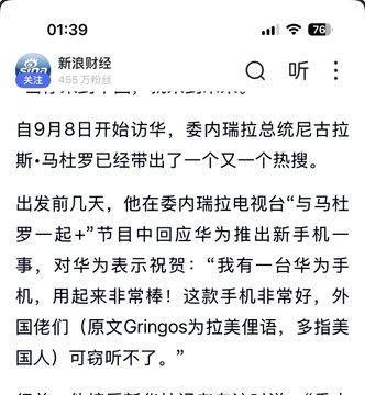 一,三个月前,马杜罗在新闻发布会上一下子举起三部华为新款手机,说这是收到的国礼,是“最安全的手机”、“梦想成真的时刻”,“华为代表了世界最好的科技水平”,重申华为手机“安全”且“美国无法窃听”。哈哈老马不知道这手机有后门,自带GPS。