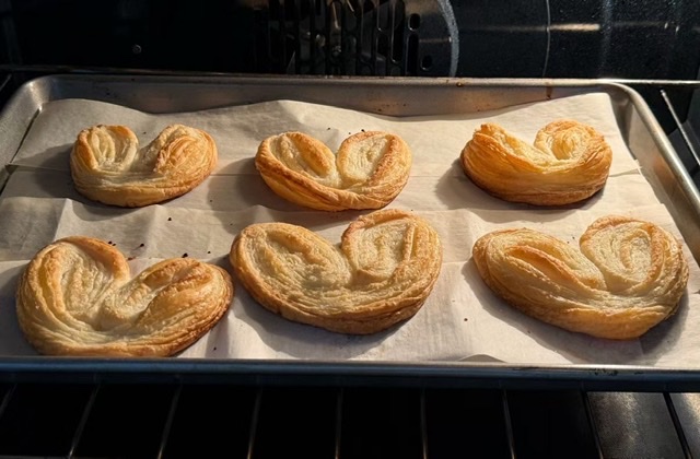 看到烤箱烤熟的蝴蝶酥让我开心不已!