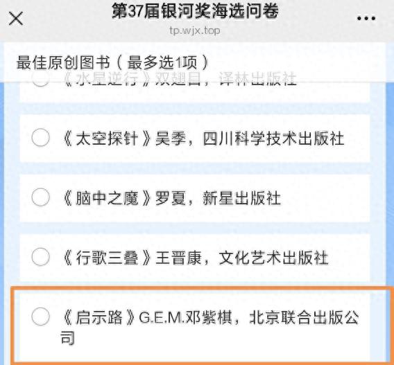 1月1日,第37届银河奖海选投票名单正式公布,其中,知名歌手邓紫棋2025年出版的长篇科幻小说《启示路》入选银河奖最佳原创图书票选名单。