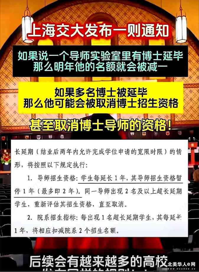 说白了就一句话:你带的博士生,要是延毕一年,那你明年就停招一年新生。延毕两年,就停招两年。要是连续两年都这样……对不起,您这导师资格,咱们得坐下来重新聊聊了。翻译翻译,什么叫釜底抽薪?这就叫釜底抽薪。