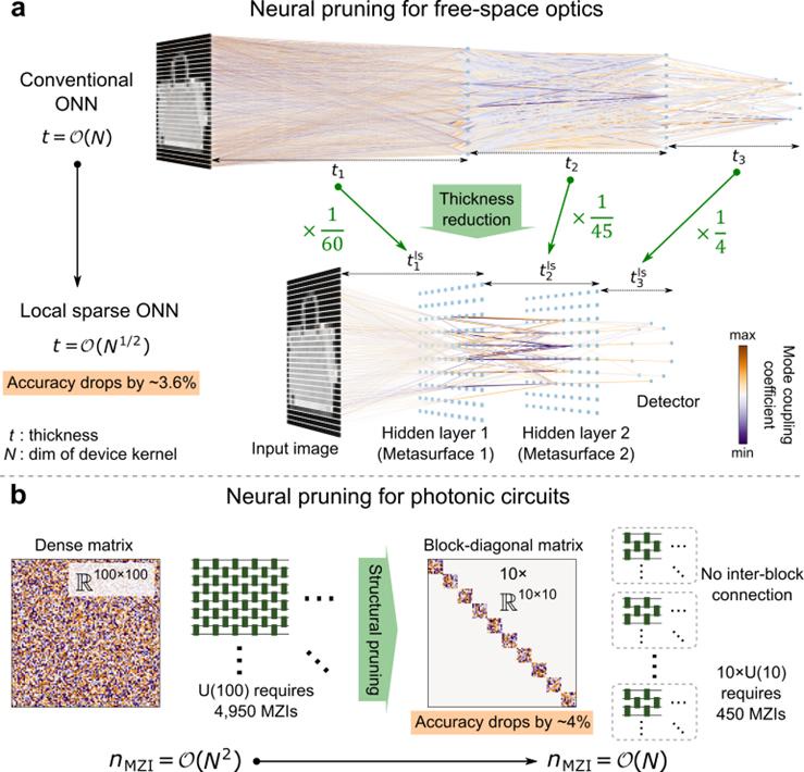 相关论文的第一作者、康奈尔大学博士后李彦栋开发出针对光学系统的模型压缩与简化策略,将光学神经网络的物理尺寸缩小到传统设计的 1%–10%, 同时保持推理准确率基本不变。