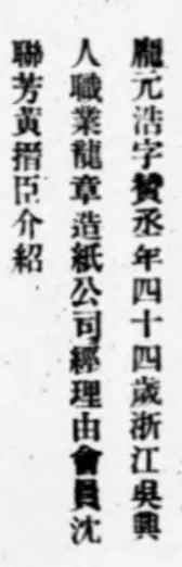 庞赞臣生年一般认为是1881年,这是错的。《金融人物志》:“生于公元一八八五年”《商业月报》1928年第8卷第7期,称其四十四岁,龙章造纸厂公司经理。四十四是用虚岁,故其生年为1885年。