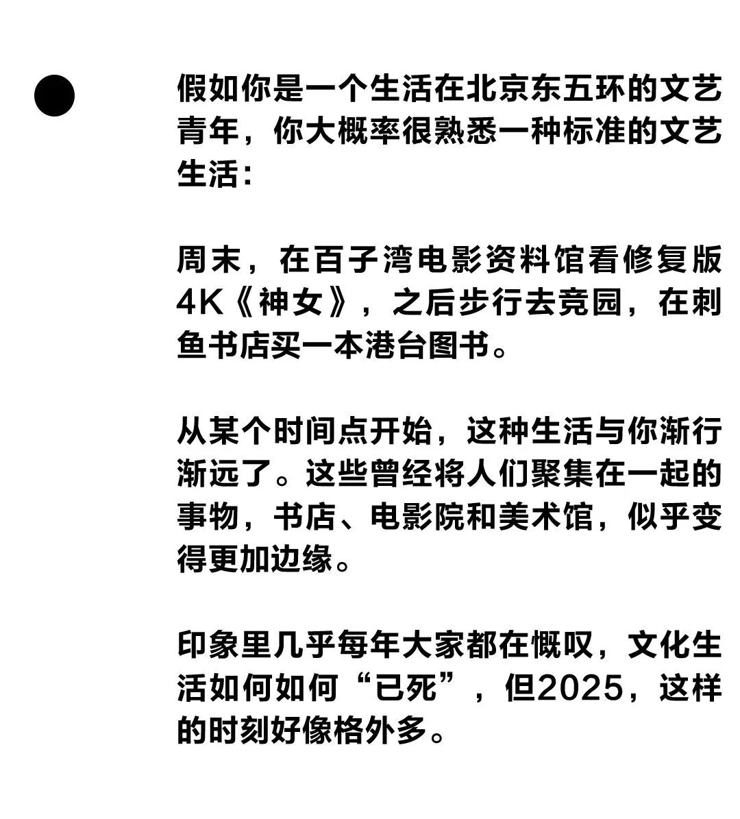 文艺生活或许在退潮,但依然没有绝迹。它依然发生在屏幕之外、在算法和AI无法触及的地方,那里可能有比现实更广阔的东西。