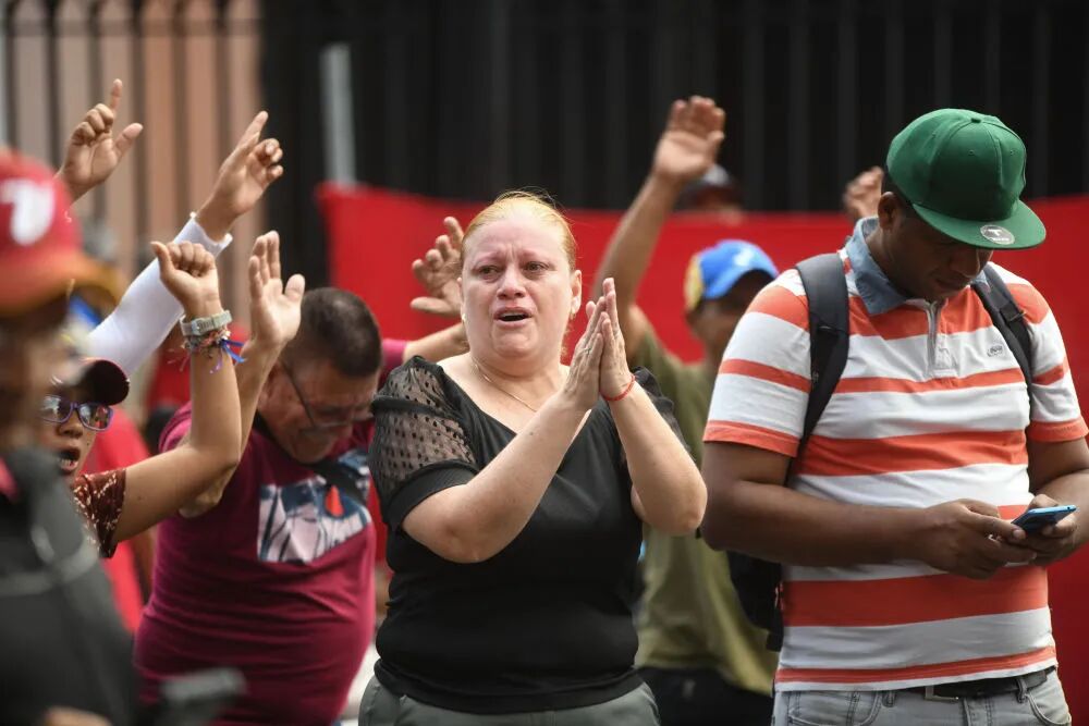 1月3日,在委内瑞拉首都加拉加斯,人们在米拉弗洛雷斯宫附近集会。