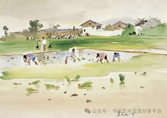 他的水彩画创作集中在20世纪五六十年代,《插秧》是其早期现实主义题材的代表,也是他“风筝不断线”(艺术源于生活)理念的实践。