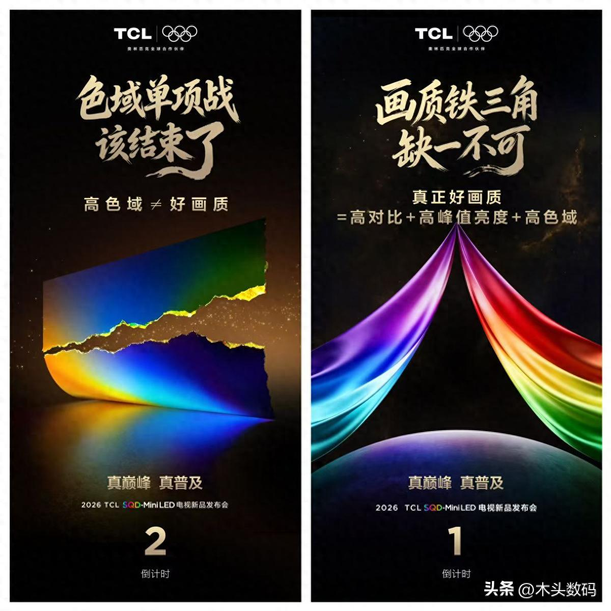不难看出,TCL的SQD-Mini LED技术,正是“画质铁三角”全面在线的最佳诠释。它不搞单一参数的“单项战”,而是通过全链路技术创新,让对比度、亮度、色彩协同发力,重新定义了高端电视的好画质标准。结合此次倒计时海报的强烈信号,TCL显然已为这场“画质革命”做好准备。