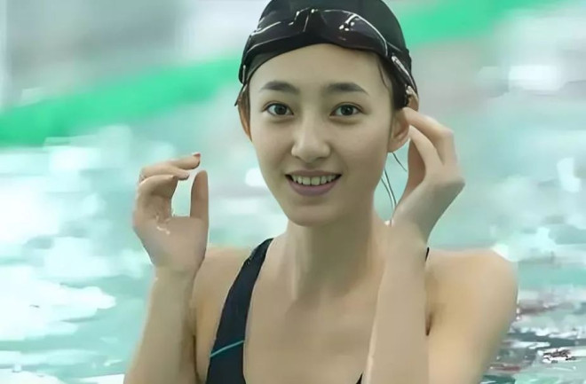 从泳池出来的瞬间,清丽可人的面孔让人眼前一亮。
