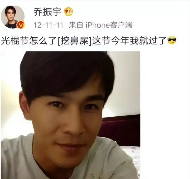 同年11月11日,乔振宇发了一条动态:光棍节怎么了,这节日今年我就过了。
