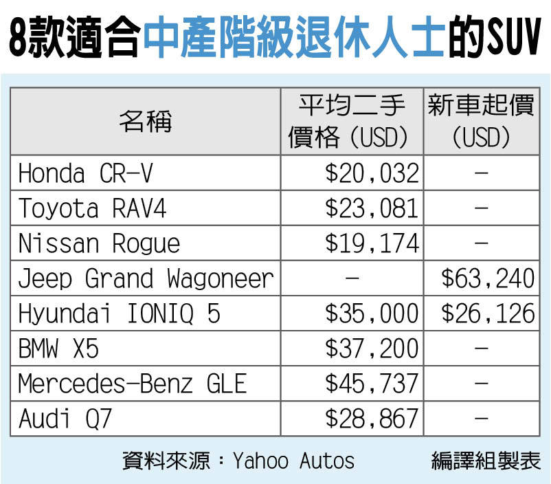 8款适合中产阶级退休人士的SUV资料来源:Yahoo Autos
