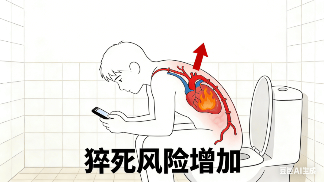 研究表明,排便时脑动脉压力可增加20毫米汞柱以上。对心脑血管疾病患者,心肌耗氧量的增加可诱发心绞痛、心肌梗塞,血压骤升可导致脑血管破裂出血,如果排便时间因为玩手机而延长,那么就有可能引发猝死等严重后果。