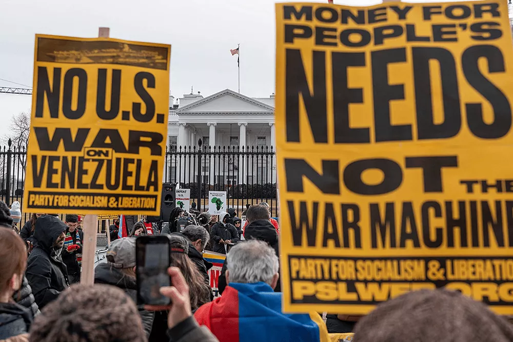 组织方发表声明说,美国发动的战争将给委内瑞拉人民带来死亡和毁灭。美国战争机器消耗大量纳税款,而工薪家庭却在为生计苦苦挣扎。美国人民不想要另一场战争,对美国向委内瑞拉发动的战争说“不”。