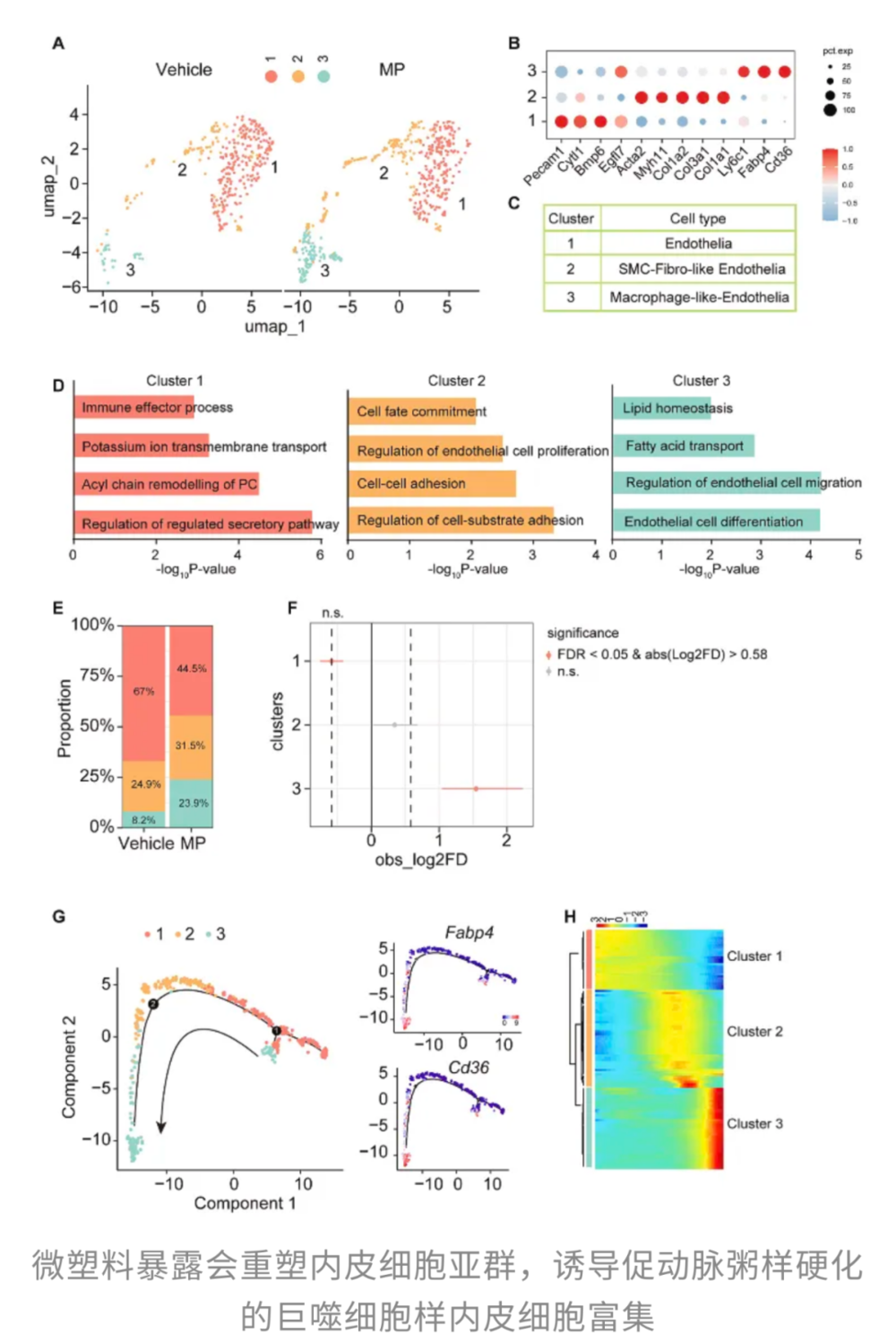 并且,在巨噬细胞样内皮细胞中,Cd36和Fabp4这些动脉粥样硬化密切相关的基因被激活。Cd36不仅负责搬运脂质,还能促炎;Fabp4则和脂肪酸代谢以及炎症反应密切相关。